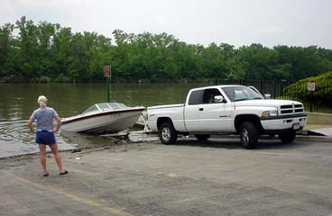 However, our cool plans changed when we busted the prop. Here's the boat guru, Ang, assessing our "situation." We started to idle our way back - with the emphasis on idle, until we were able to catch a tow from 2 guys in a little yellow boat... |
